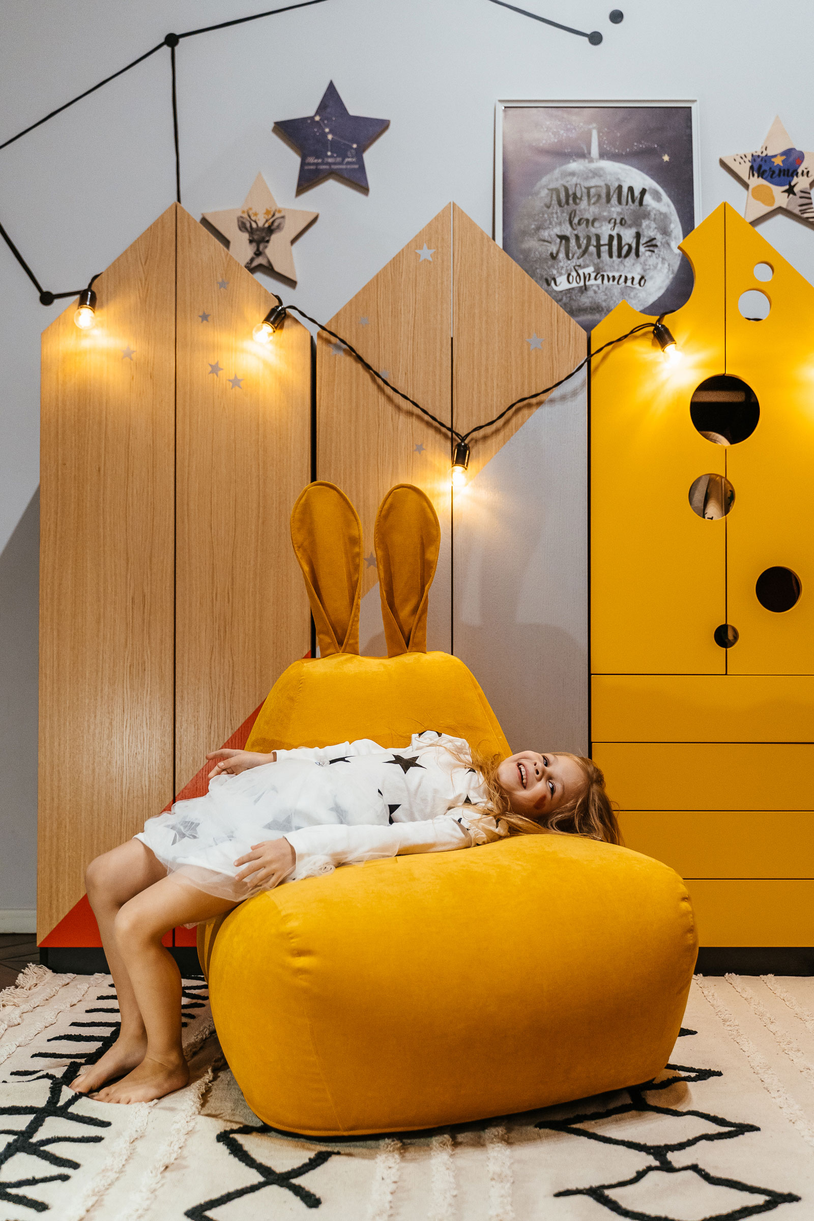 Мебель без острых углов. Шкафы и столы выбирайте со скругленными уголками, а мягкую мебель лучше использовать без каркаса. Например, кресла и пуфы от мастерской KRESLO не имеют жестких элементов: в них только мягкий гипоаллергенный наполнитель, надежно спрятанный во внутреннем чехле, который убережет малыша от ударов и ссадин.