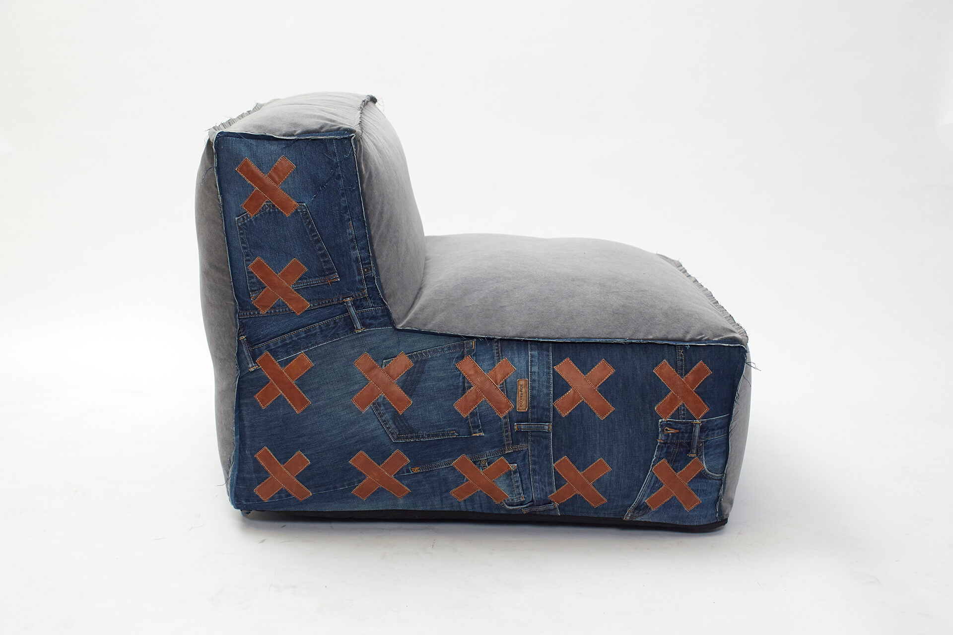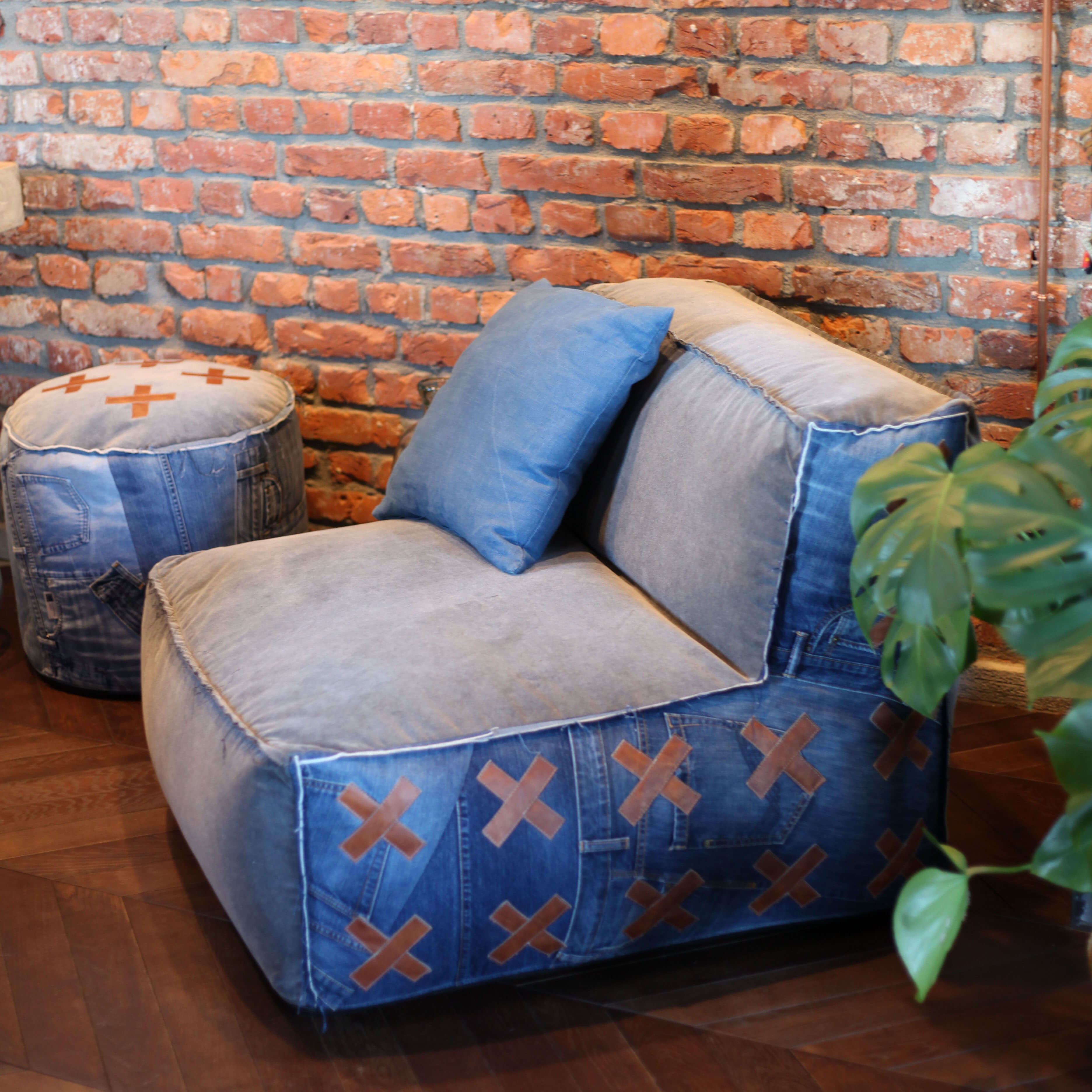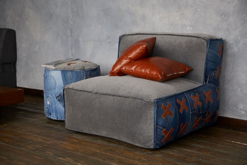 В конце 2019 года мы тоже запустили эко-проект совместно со студией дизайна Totaste! Мы делаем замечательные кресла и пуфы RE из старых джинсов. Вы можете сдать любые вещи из денима и заказать уникальное кресло из них для своего дома или офиса со скидкой 5%, либо просто сдать джинсовую одежду, вместо того, чтобы выбросить ее.