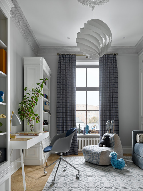Charade Trick в голубом оттенке в сочетании со спокойным серым подойдет в современную детскую для мальчика: