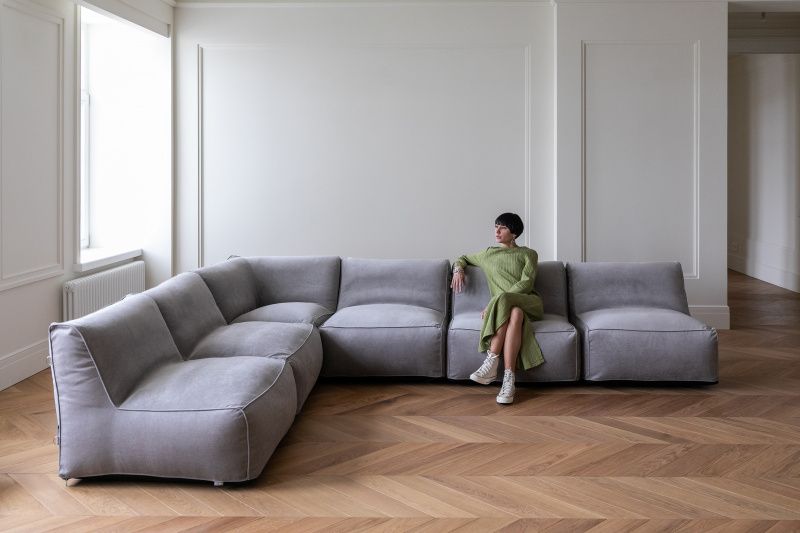 - Мобильность. Даже огромный бескаркасный модульный диван за считанные минуты превращается в набор компактных кресел, которые можно легко перемещать по полу или выносить в другие комнаты. Сделать перестановку теперь проще простого — подстраивайте пространство под нужные вам задачи.